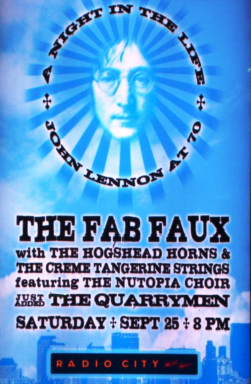 In 2010, while on a business trip to New York, I witnessed a unique show in celebration of John Lennon's life and music. It was billed as ‘The Fab Faux present A Night In The Life’. If you have heard them at all, you will know the Fab Faux, led by bassist Will Lee, recreate the Beatles songs extremely faithfully.